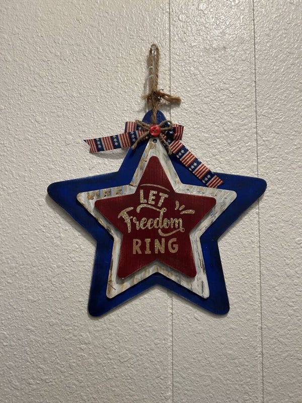 "LET Freedom RING" Patriotic Star Layered Wood Wall Decor